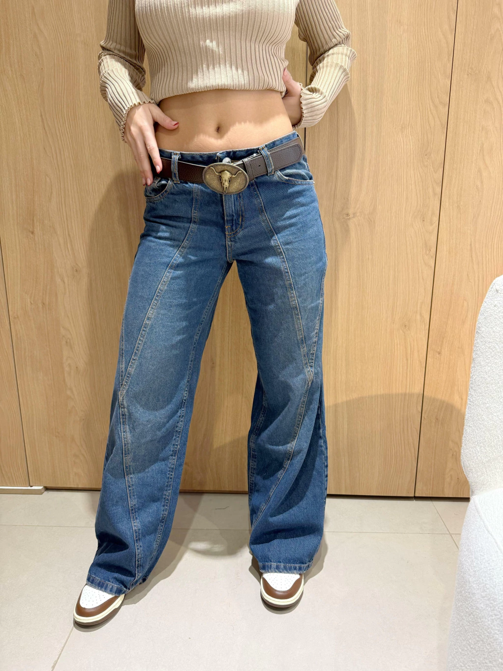 Jeans elasizado tiro bajo con recortes, tiene mucha onda y segun como lo combines queda barbaro para la noche tambien !